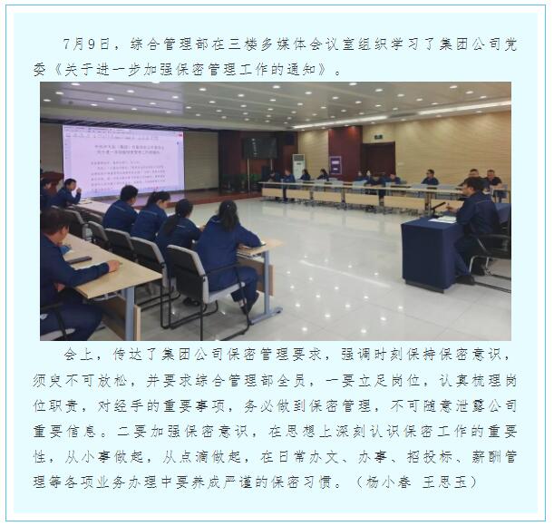 綜合管理部組織學(xué)習(xí)集團(tuán)公司黨委保密文件