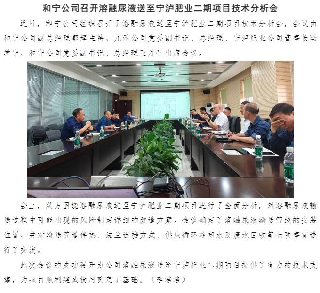 和寧公司召開溶融尿液送至寧瀘肥業(yè)二期項目技術(shù)分析會