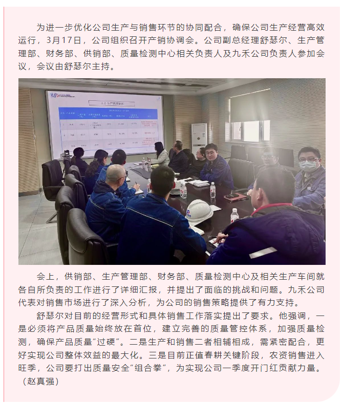 公司組織召開(kāi)產(chǎn)銷協(xié)調(diào)會(huì)