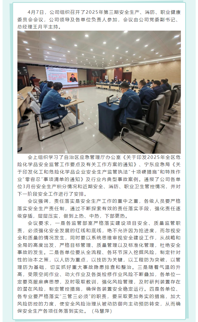 公司召開(kāi)安全生產(chǎn)、消防、職業(yè)健康委員會(huì)會(huì)議
