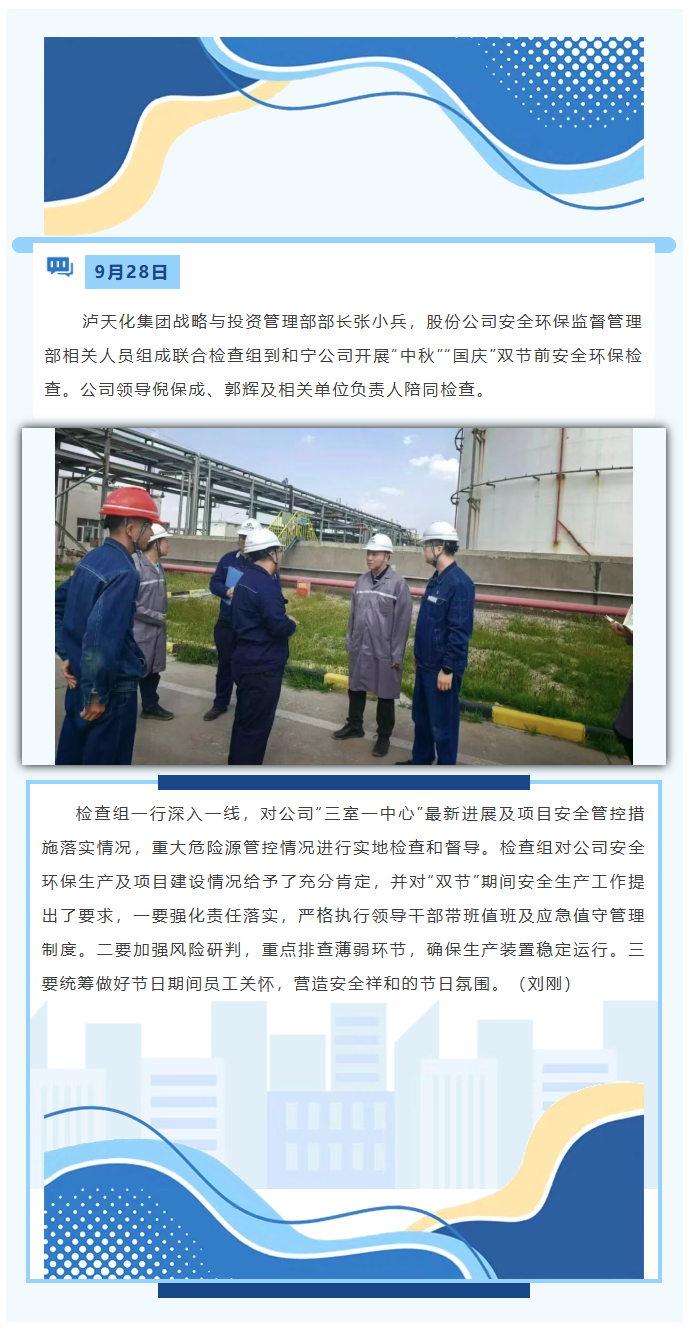 瀘天化聯(lián)合檢查組到和寧公司開展雙節(jié)前安全環(huán)保檢查