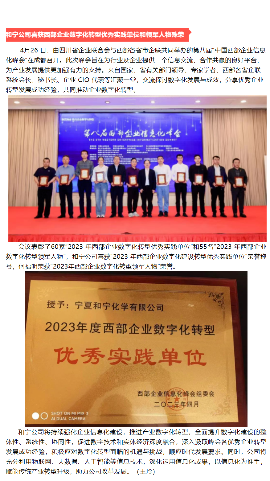 和寧公司喜獲西部企業(yè)數(shù)字化轉(zhuǎn)型優(yōu)秀實(shí)踐單位和領(lǐng)軍人物殊榮