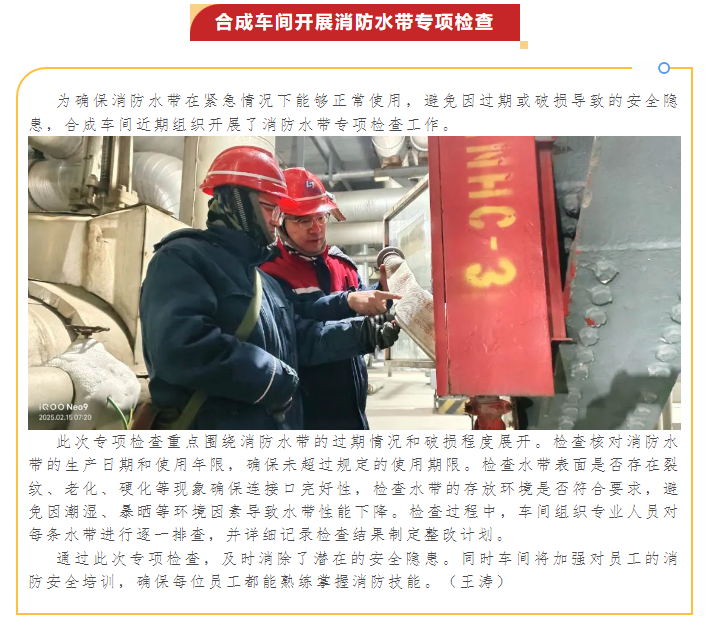 合成車間開(kāi)展消防水帶專項(xiàng)檢查