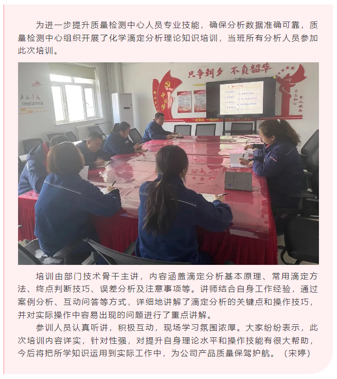 質(zhì)量檢測(cè)中心開展化學(xué)滴定分析理論知識(shí)培訓(xùn)