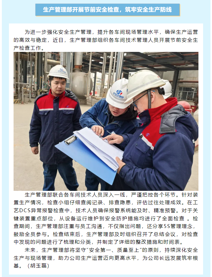 生產(chǎn)管理部開展節(jié)前安全檢查,筑牢安全生產(chǎn)防線