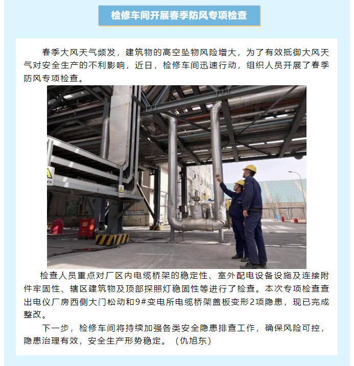 檢修車間開展春季防風(fēng)專項(xiàng)檢查