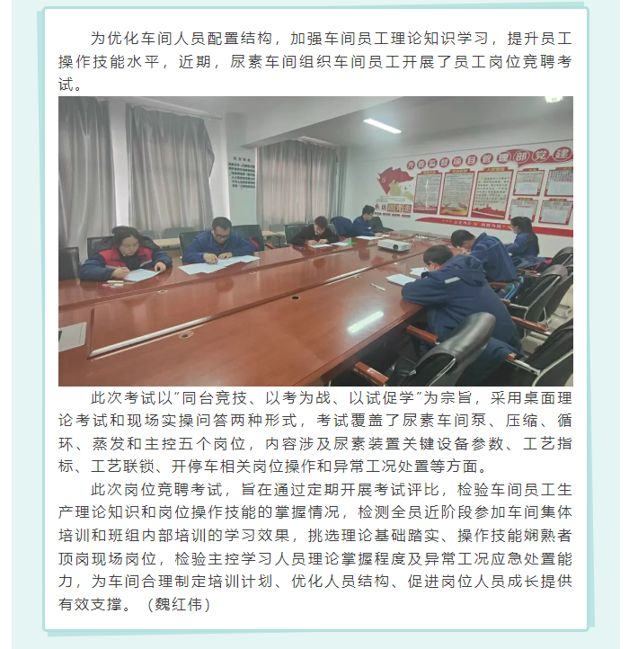 尿素車間開展員工崗位競聘考試