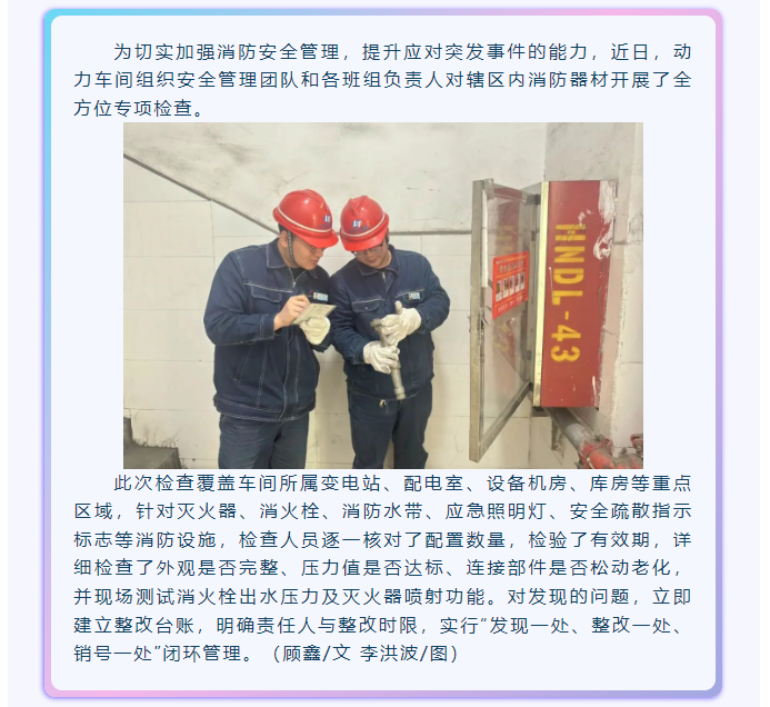 動力車間開展消防設施專項檢查
