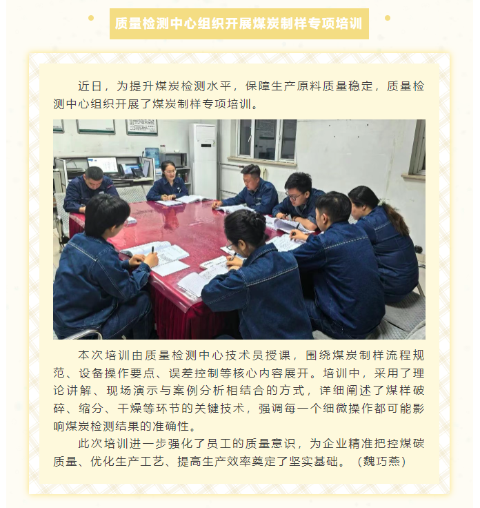質(zhì)量檢測(cè)中心組織開展煤炭制樣專項(xiàng)培訓(xùn)
