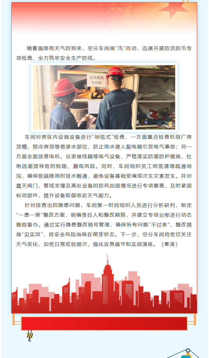空分車間組織開(kāi)展防洪防汛專項(xiàng)檢查