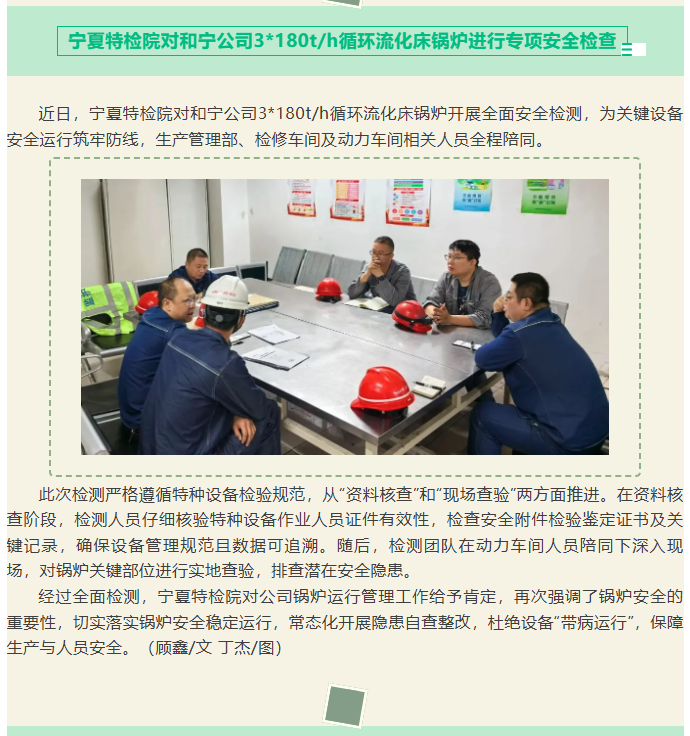 寧夏特檢院對(duì)和寧公司3*180t/h循環(huán)流化床鍋爐進(jìn)行專項(xiàng)安全檢查