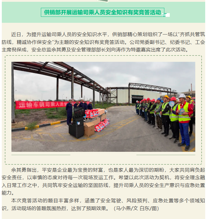 供銷部開展運(yùn)輸司乘人員安全知識(shí)有獎(jiǎng)競(jìng)答活動(dòng)