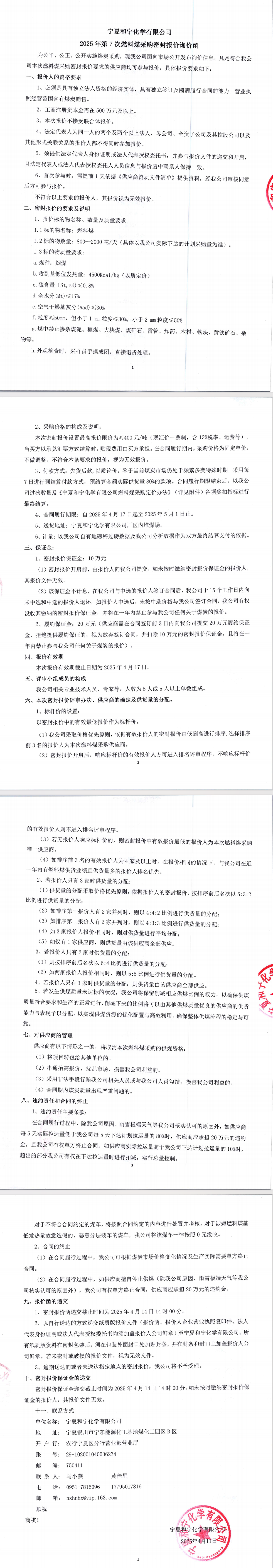 寧夏和寧化學(xué)有限公司2025年第7次燃料煤采購密封報價詢價函附件.pdf [全文]