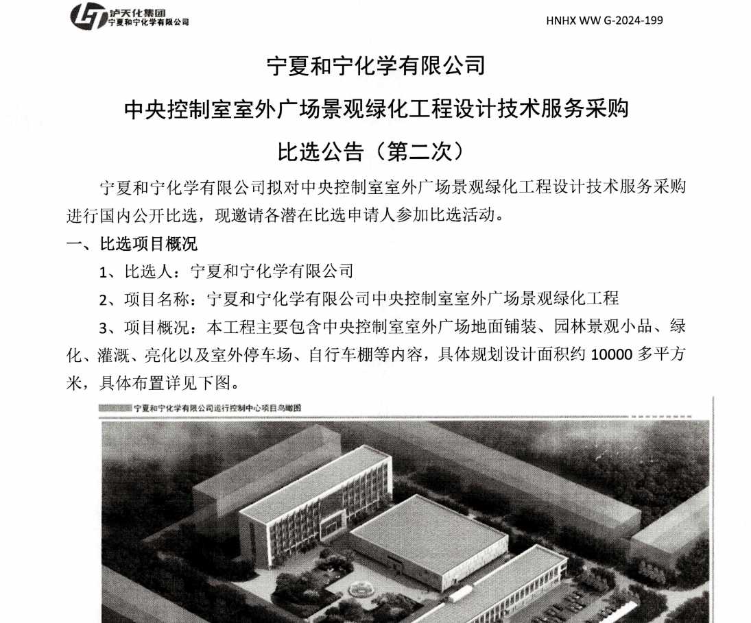 寧夏和寧化學(xué)有限公司中央控制室室外廣場景觀綠化工程設(shè)計技術(shù)服務(wù)采購比選公告(第二次).pdf [全文]