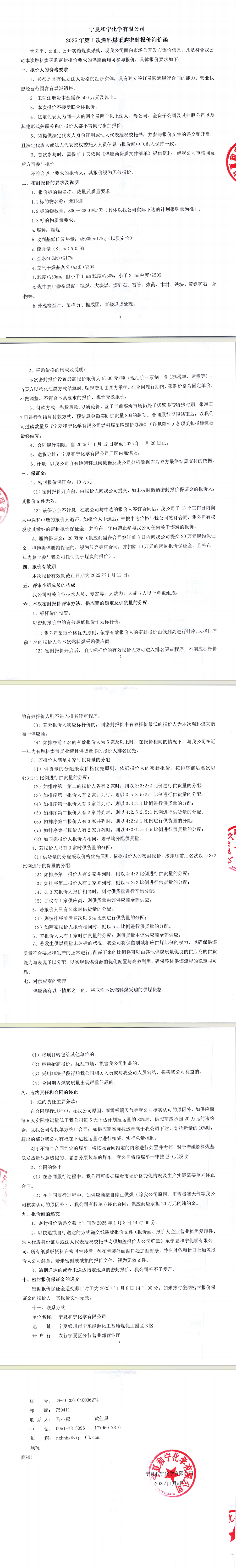 寧夏和寧化學(xué)有限公司2025年第1次燃料煤采購密封報價詢價函 [全文]