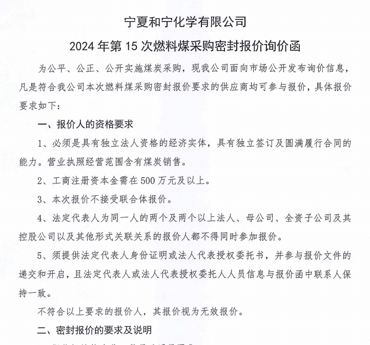 寧夏和寧化學(xué)有限公司2024 年第 15 次燃料煤采購(gòu)密封報(bào)價(jià)詢(xún)價(jià)函.pdf [全文]