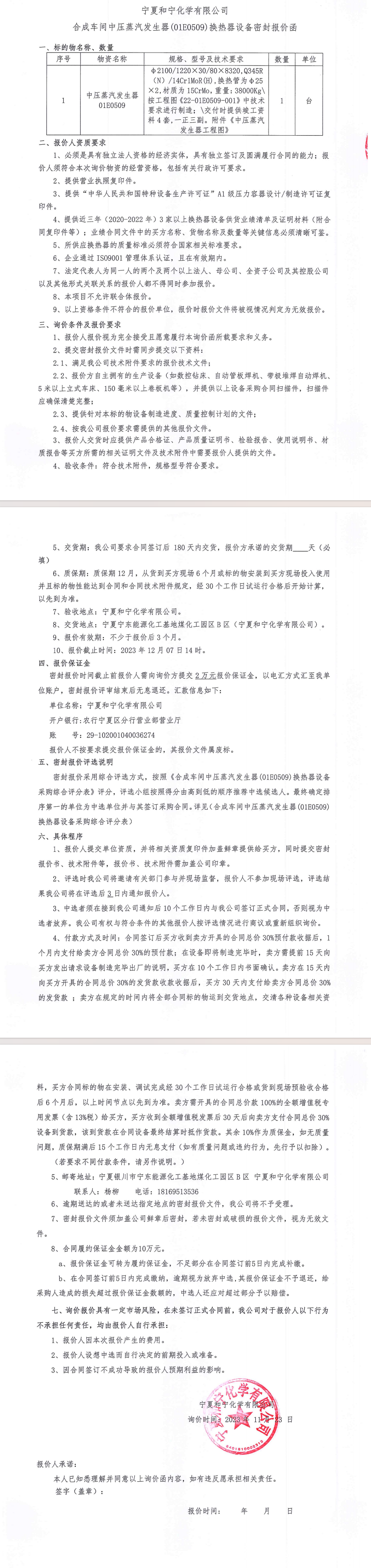 寧夏和寧化學有限公司2023年第22次燃料煤采購密封報價詢價函.pdf [全文]