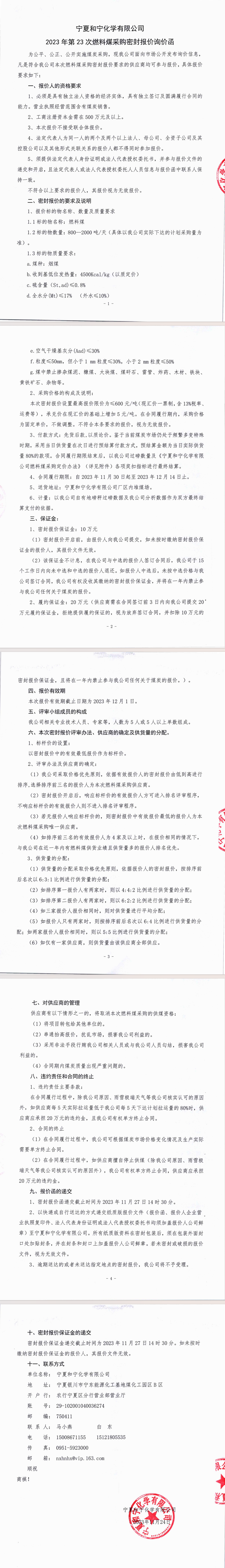 寧夏和寧化學有限公司2023—2024年第2次冬儲燃料煤采購密封報價詢價函.pdf [全文]