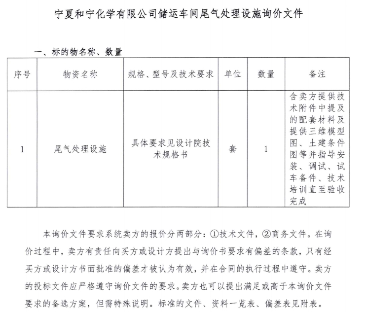 寧夏和寧化學(xué)有限公司儲運車間尾氣處理設(shè)施詢價文件.pdf [全文]