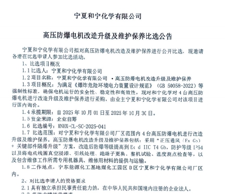 寧夏和寧化學(xué)有限公司高壓防爆電機(jī)改造升級及維護(hù)保養(yǎng)比選公告.pdf [全文]