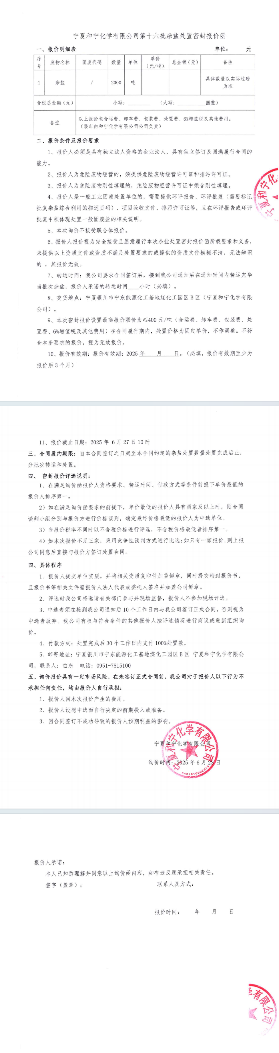 寧夏和寧化學(xué)有限公司第十六批雜鹽處置密封報(bào)價(jià)函附件下載.pdf [全文]