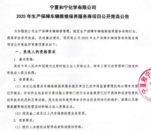 寧夏和寧化學(xué)有限公司2025年生產(chǎn)保障車輛維修保養(yǎng)服務(wù)商入圍項(xiàng)目公開競選公告.pdf [全文]