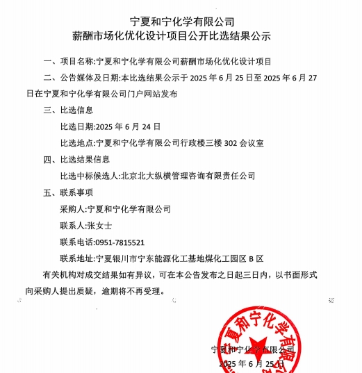 寧夏和寧化學(xué)有限公司薪酬市場化優(yōu)化設(shè)計(jì)項(xiàng)目公開比選結(jié)果公示.pdf [全文]