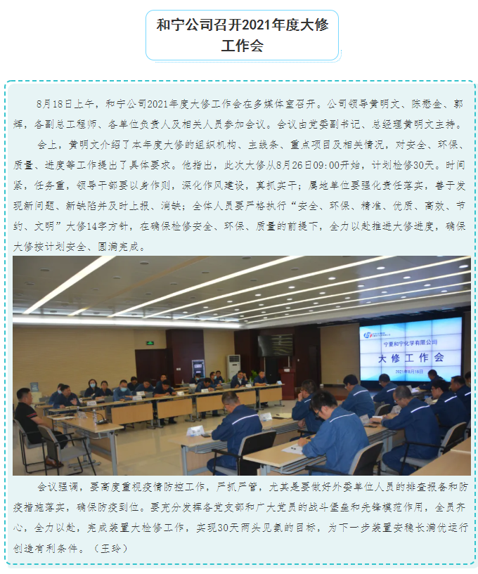 和寧公司召開(kāi)2021年度大修工作會(huì)