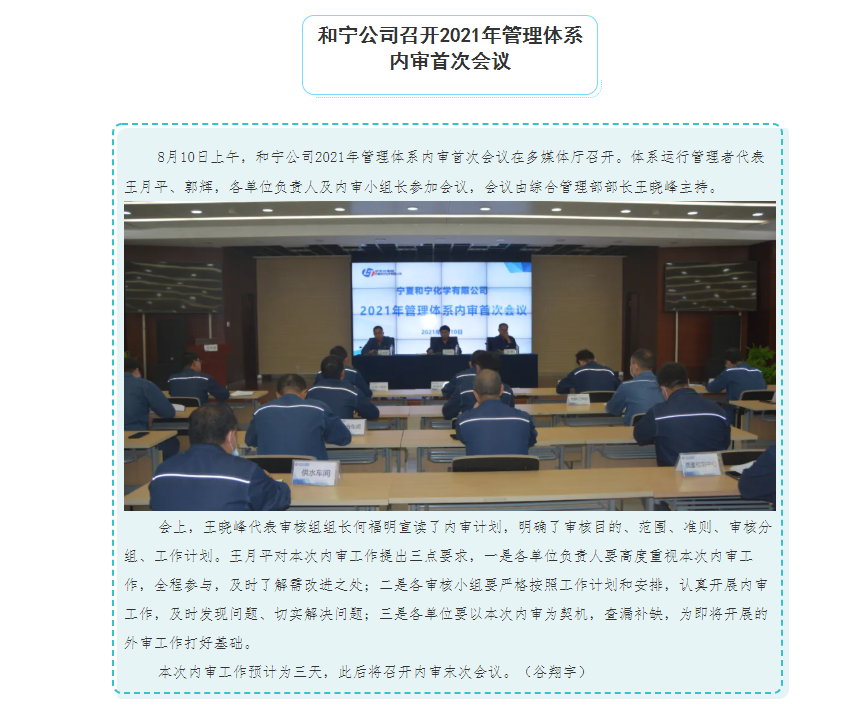 和寧公司召開2021年管理體系內(nèi)審首次會議