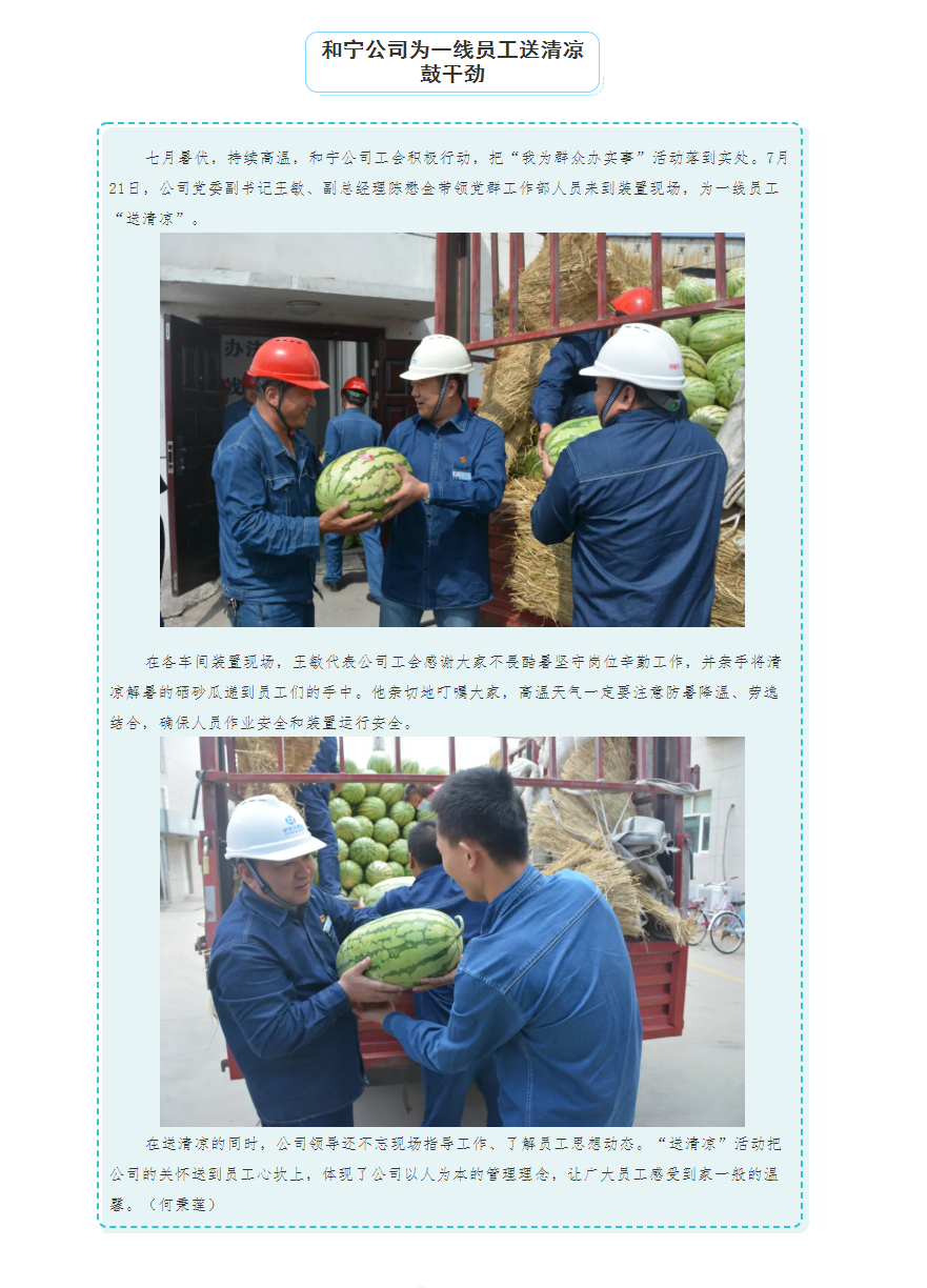 和寧公司為一線員工送清涼鼓干勁
