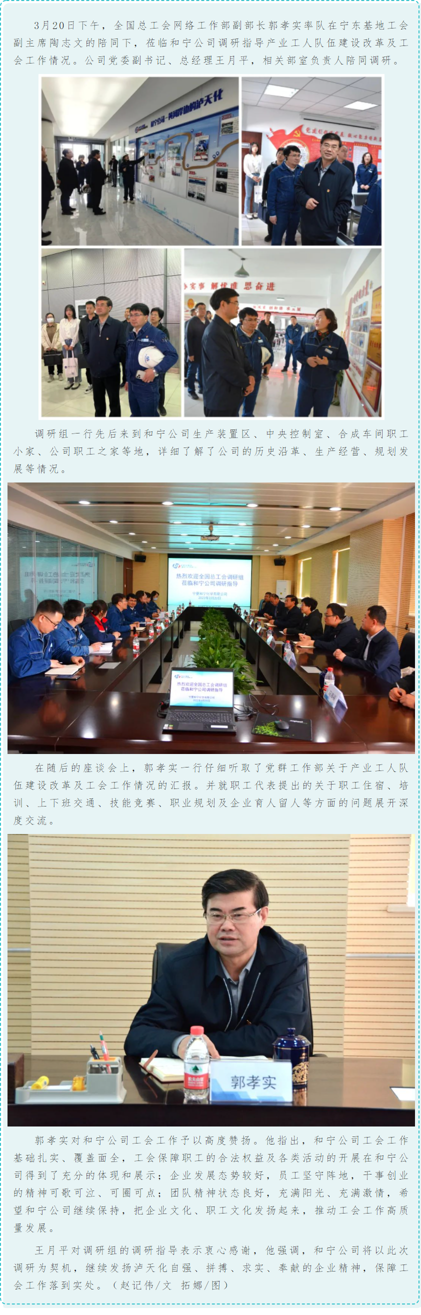 全國(guó)總工會(huì)調(diào)研組蒞臨和寧公司調(diào)研指導(dǎo)