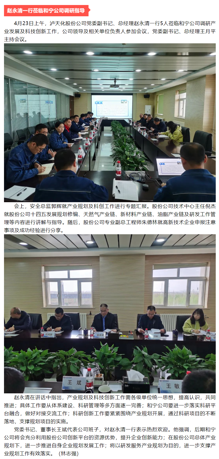 趙永清一行蒞臨和寧公司調(diào)研指導(dǎo)