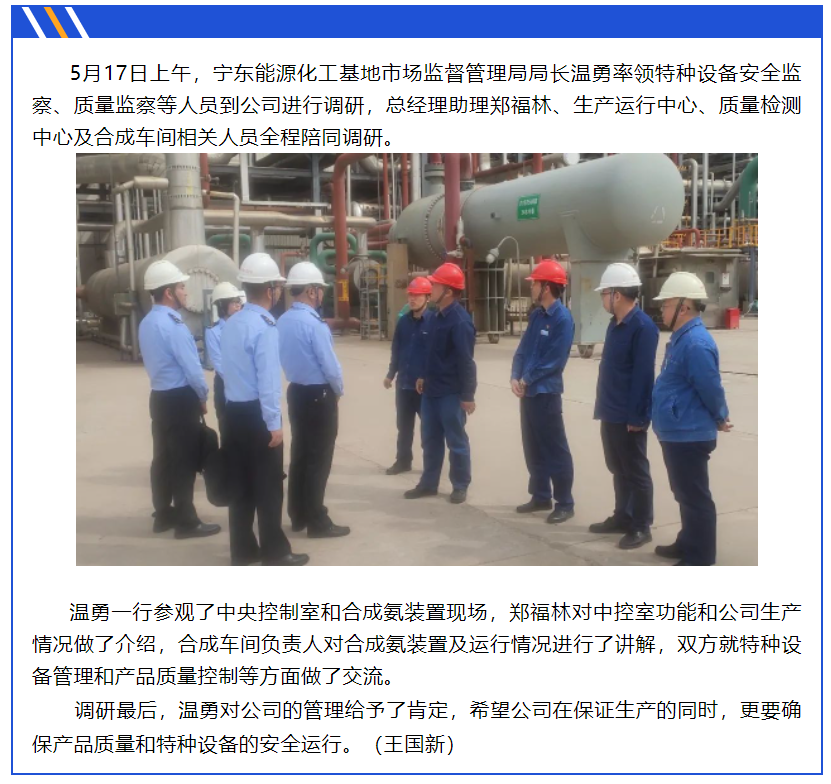 寧東市場監(jiān)管局溫勇一行到公司進行調研