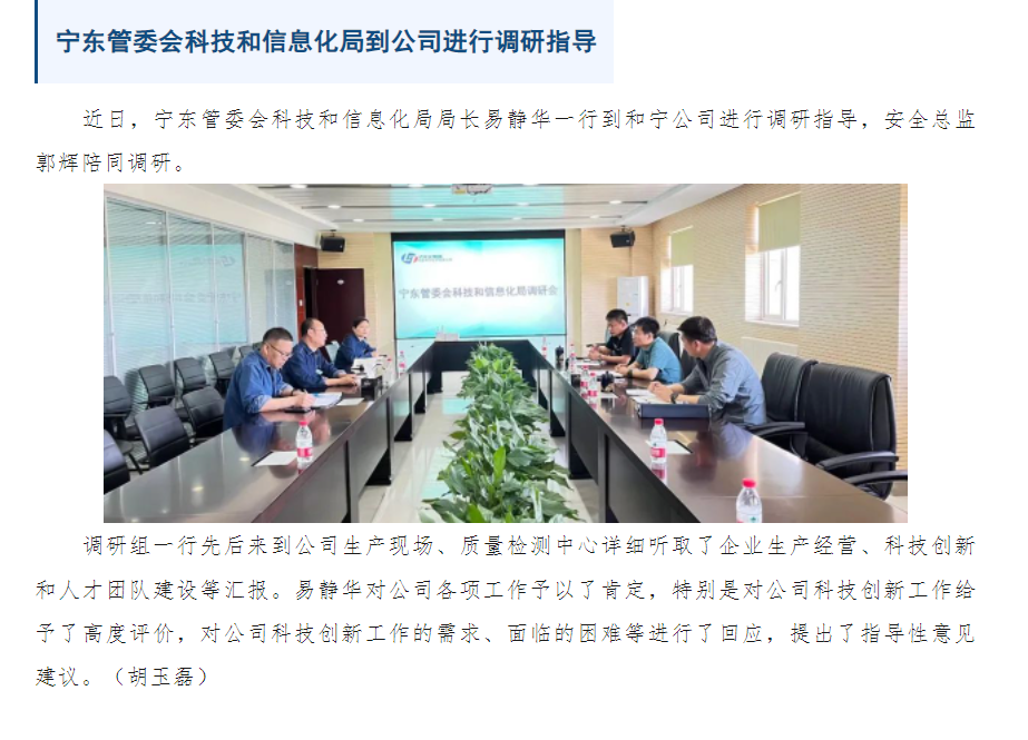 寧東管委會(huì)科技和信息化局到公司進(jìn)行調(diào)研指導(dǎo)