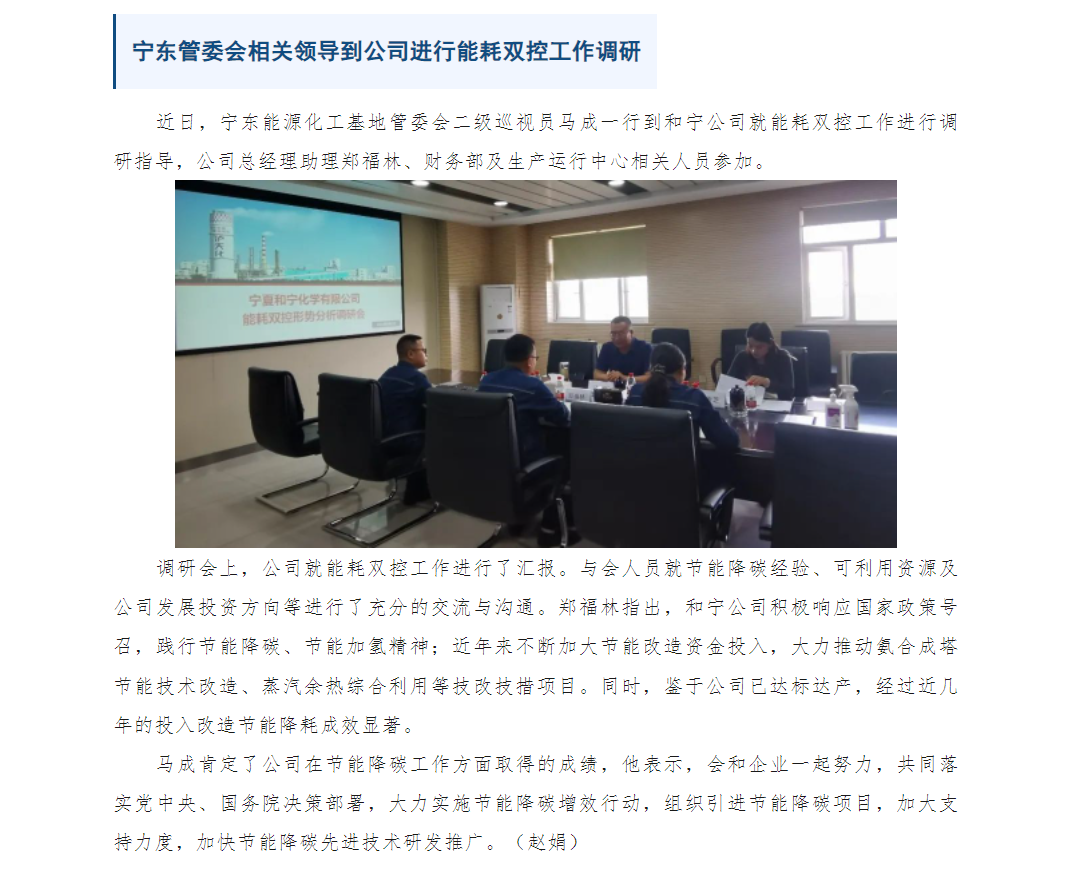寧東管委會(huì)相關(guān)領(lǐng)導(dǎo)到公司進(jìn)行能耗雙控工作調(diào)研