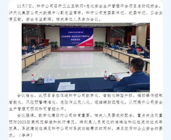 和寧公司召開工業(yè)互聯(lián)網(wǎng)+危化安全生產(chǎn)管理平臺(tái)項(xiàng)目啟動(dòng)會(huì)