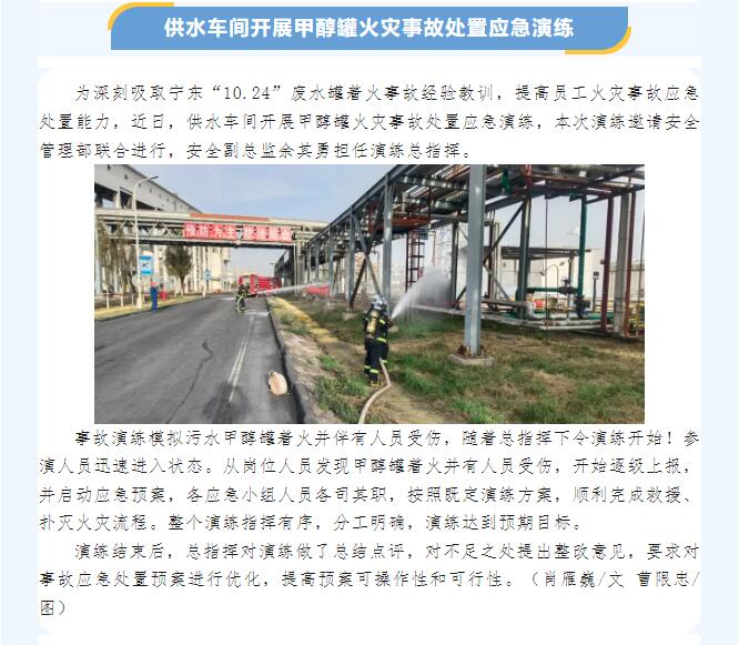 供水車間開展甲醇罐火災(zāi)事故處置應(yīng)急演練