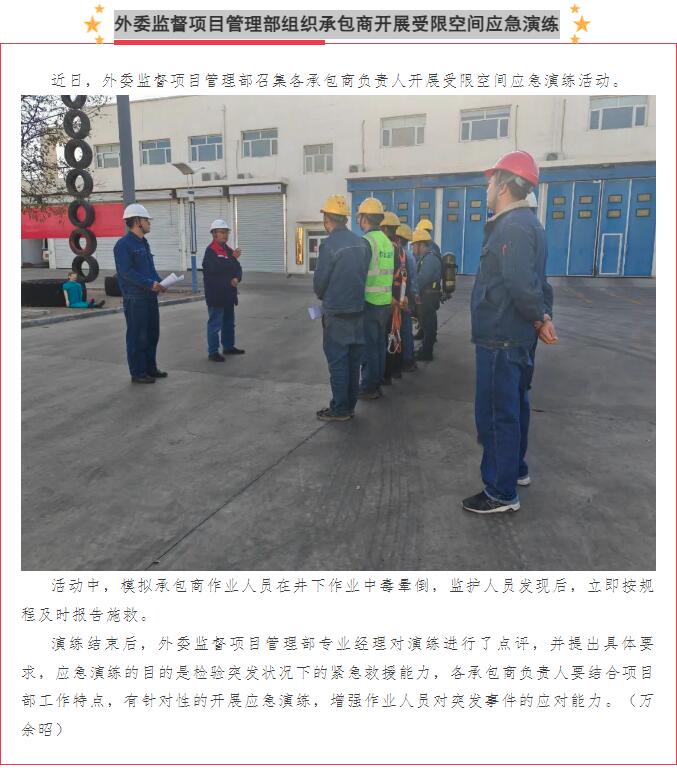 外委監(jiān)督項目管理部組織承包商開展受限空間應(yīng)急演練