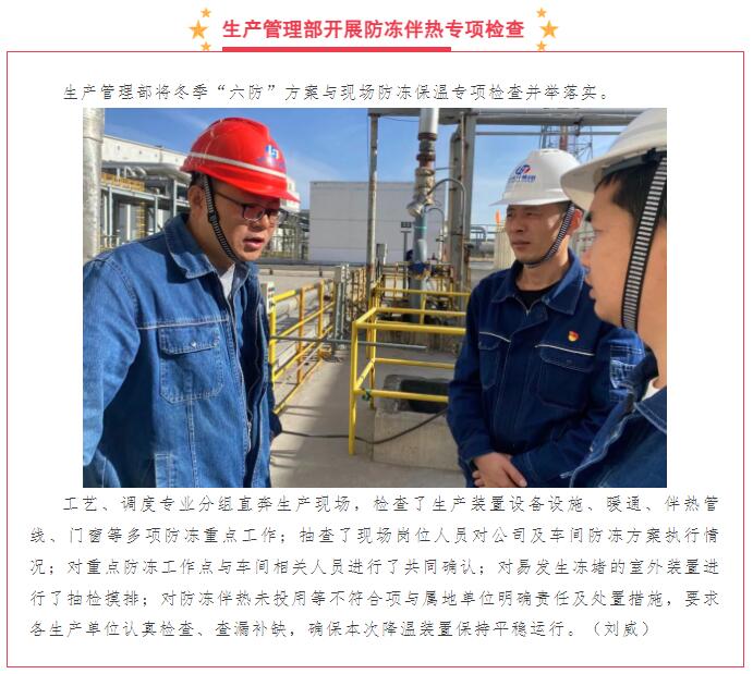 生產(chǎn)管理部開展防凍伴熱專項檢查