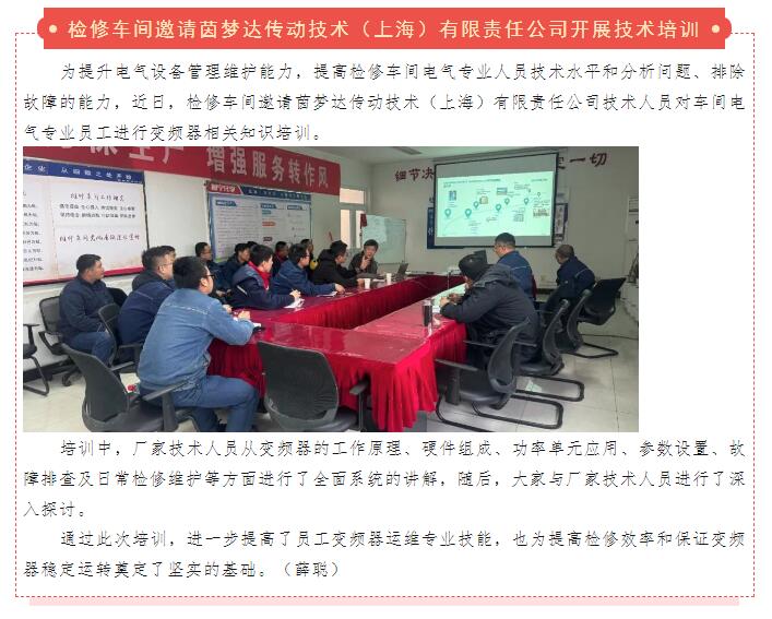 檢修車間邀請(qǐng)茵夢(mèng)達(dá)傳動(dòng)技術(shù)(上海)有限責(zé)任公司開展技術(shù)培訓(xùn)