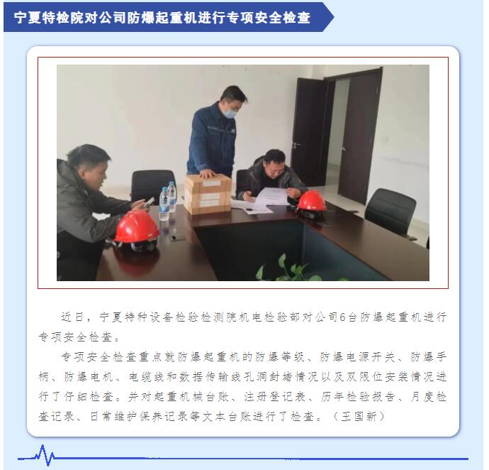 寧夏特檢院對公司防爆起重機進行專項安全檢查