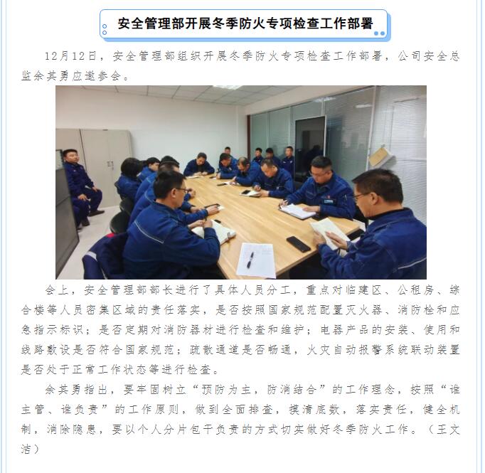 安全管理部開展冬季防火專項(xiàng)檢查工作部署