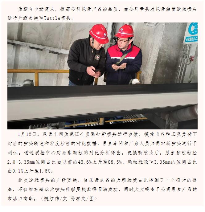 尿素車間開展Tuttle造粒噴頭調(diào)試及投運工作