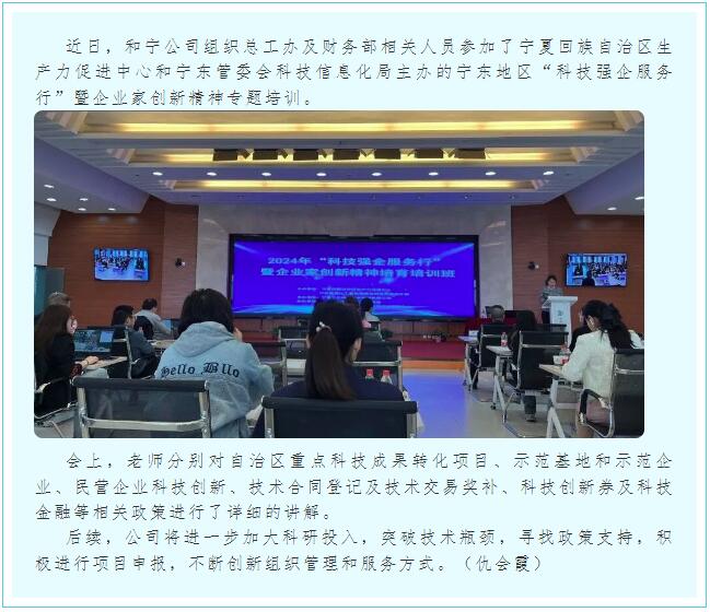 和寧公司組織參加“科技強(qiáng)企服務(wù)行”暨企業(yè)家創(chuàng)新精神專題培訓(xùn)