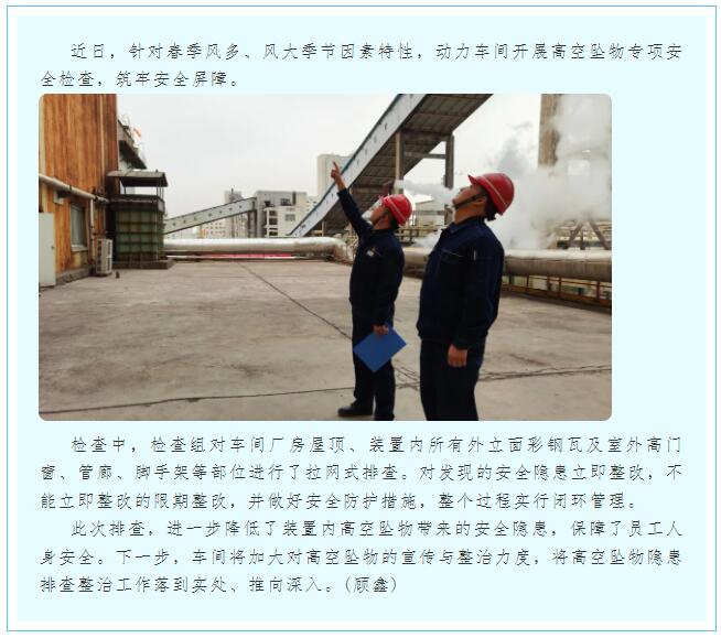 動力車間開展高空墜物專項(xiàng)安全檢查