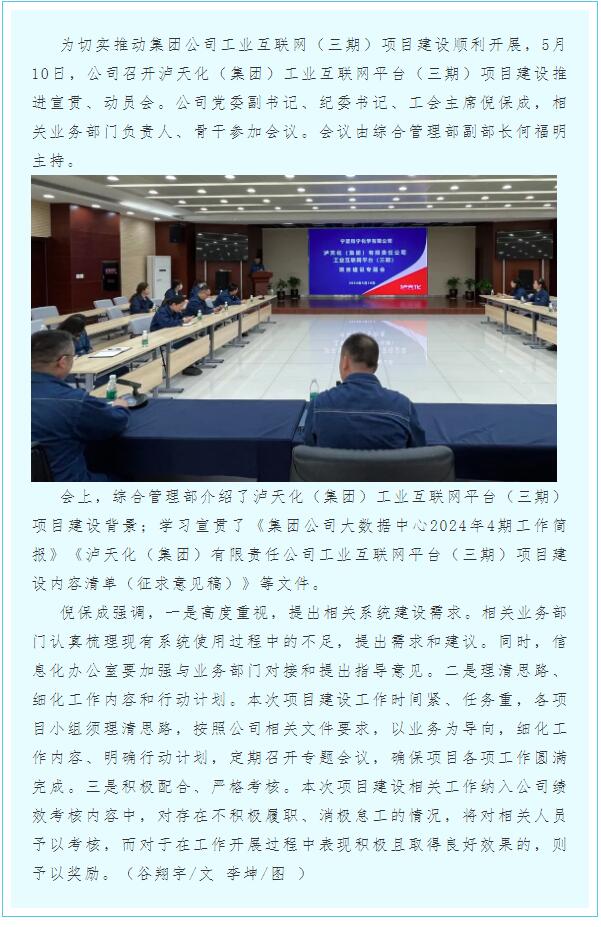 公司召開集團(tuán)公司工業(yè)互聯(lián)網(wǎng)(三期)項目建設(shè)推進(jìn)動員會