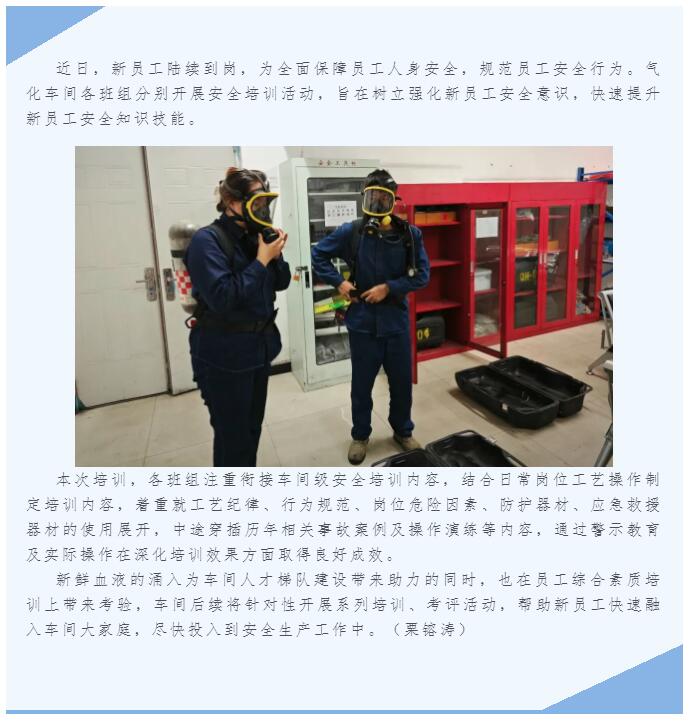 氣化車間開展新進(jìn)員工安全培訓(xùn)