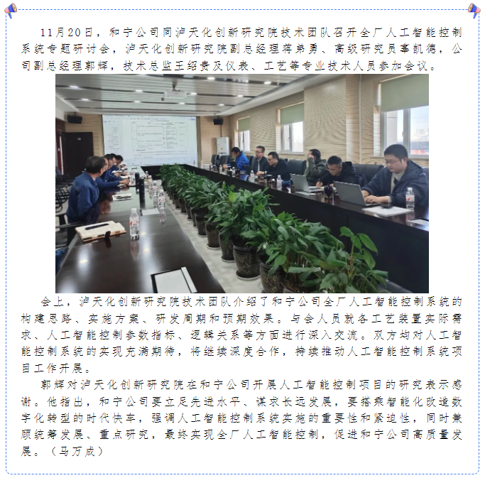 和寧公司組織召開全廠人工智能控制系統(tǒng)研討會(huì)