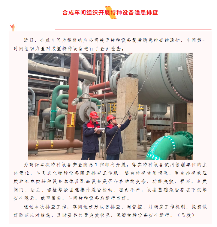 合成車間組織開展特種設備隱患排查