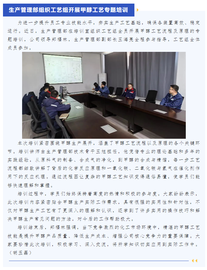 生產(chǎn)管理部組織工藝組開展甲醇工藝專題培訓(xùn)